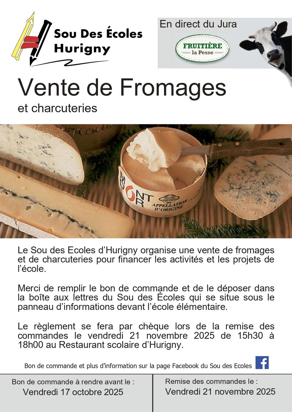 Le règlement se fera par chèque lors de la remise des commandes le vendredi 21 novembre 2025 de 15h30 à 18h00 au Restaurant scolaire d’Hurigny.