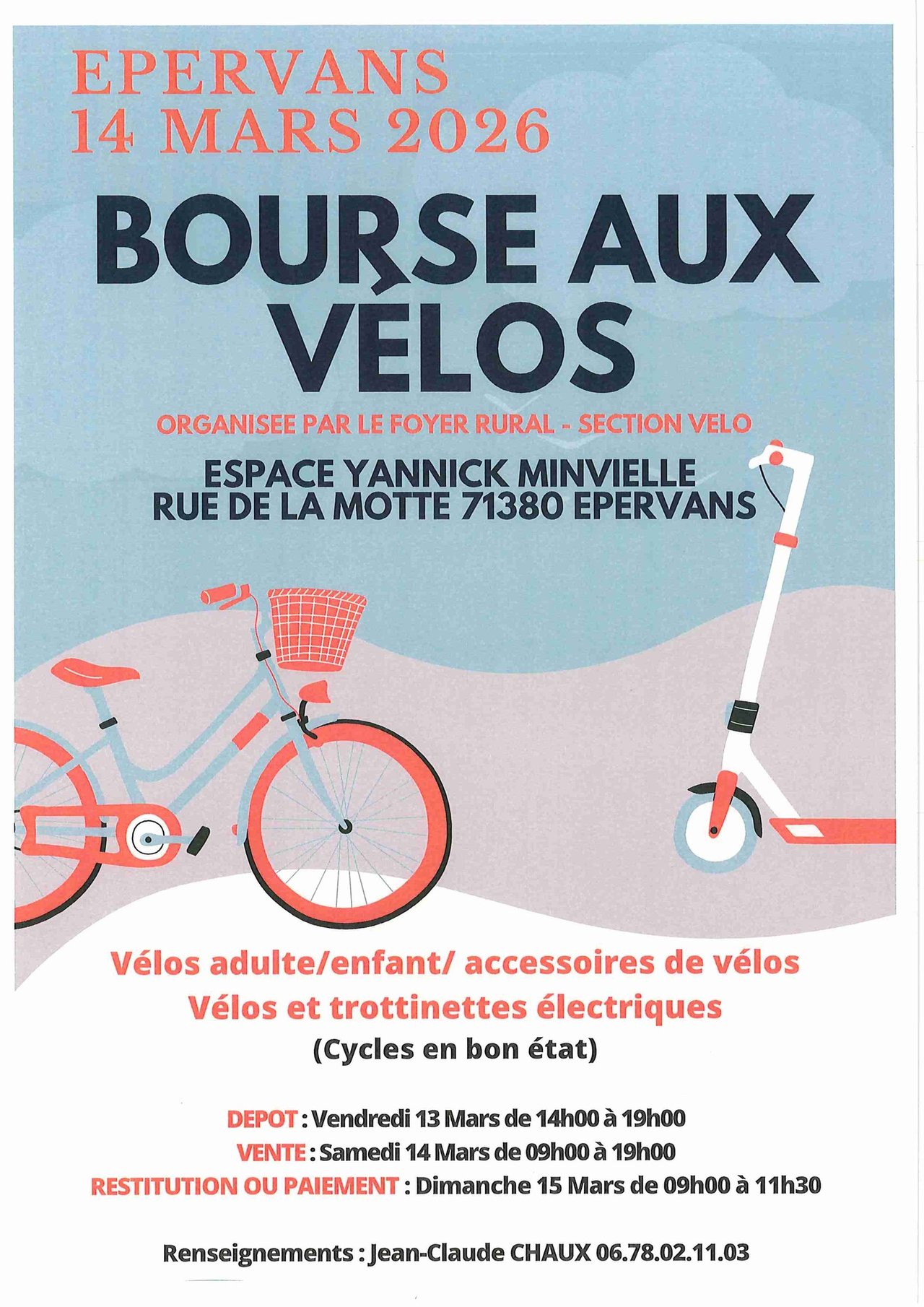 Le samedi 14 mars 2026, rendez-vous ร Epervans pour la Bourse aux vรฉlos organisรฉe par le Foyer Rural โ Section Vรฉlo !